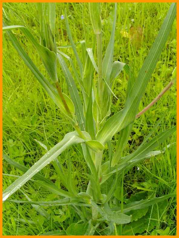 Stängel beblättert.