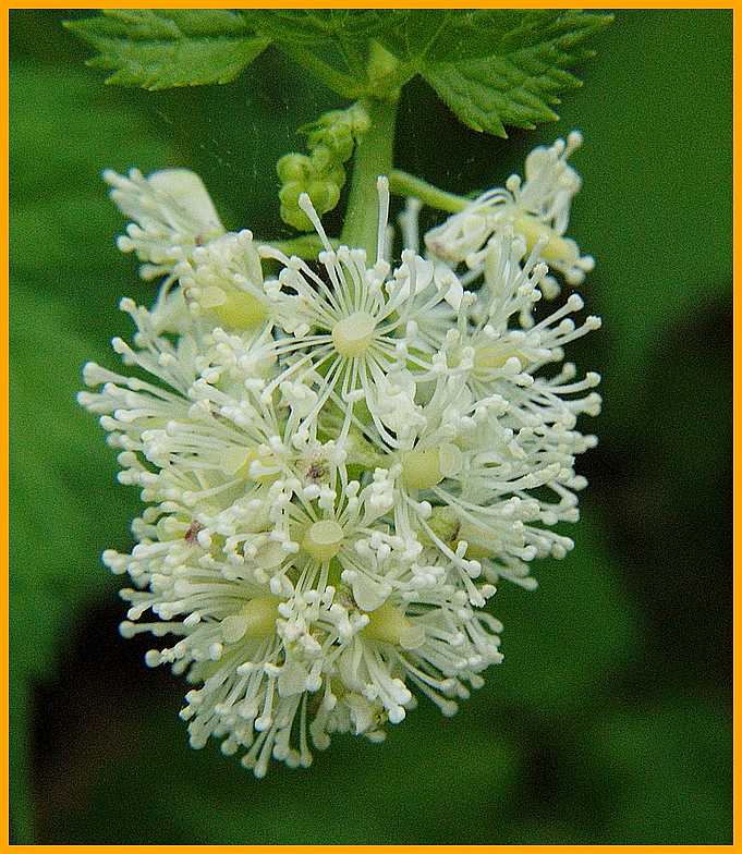 Blüten in weißen Trauben. Staubblätter länger als die Blüte.