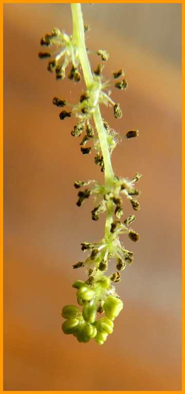 Männliche Blüten in hängenden Kätzchen.
