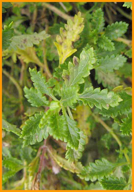 Blätter gezähnt, in den Stiel verschmälert.