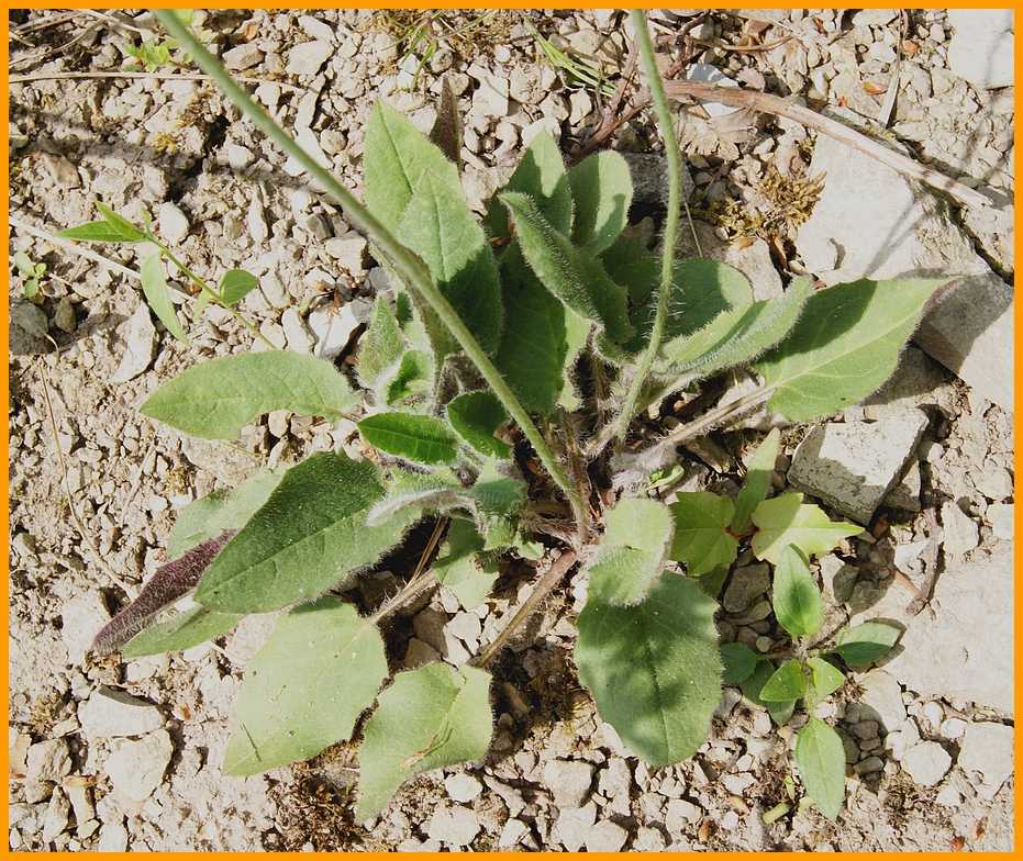 Rosettenblätter eiförmig, buchtig gezähnt, gestielt.