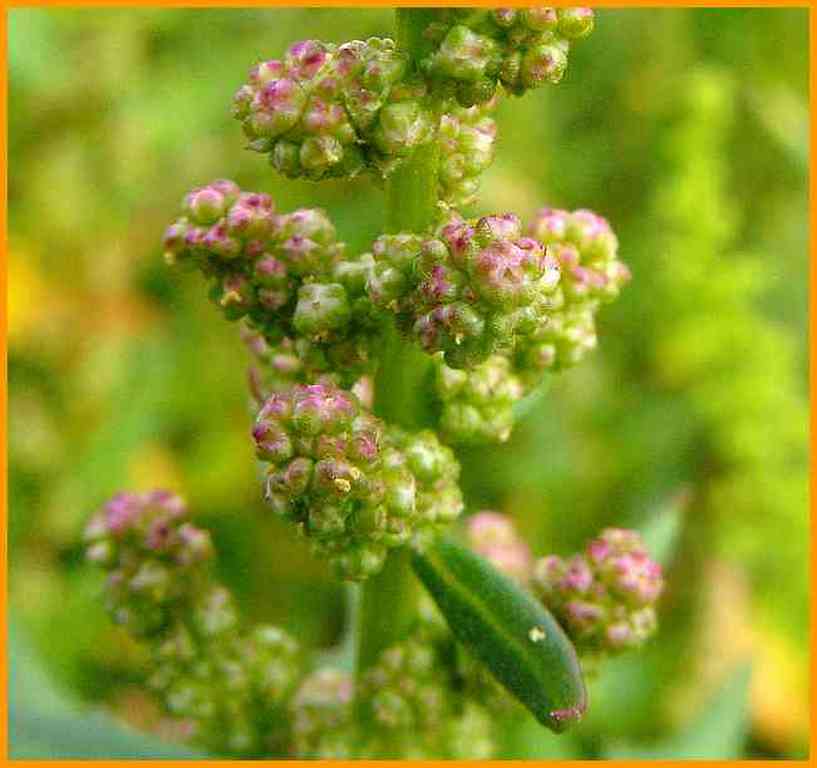 Blüten in Knäueln. Fruchtknöllchen rot.