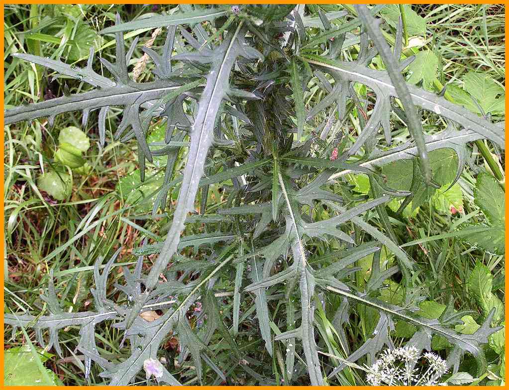 Blätter lanzettlich, fiederspaltig. Blattoberseite kahl, dunkelgrün.