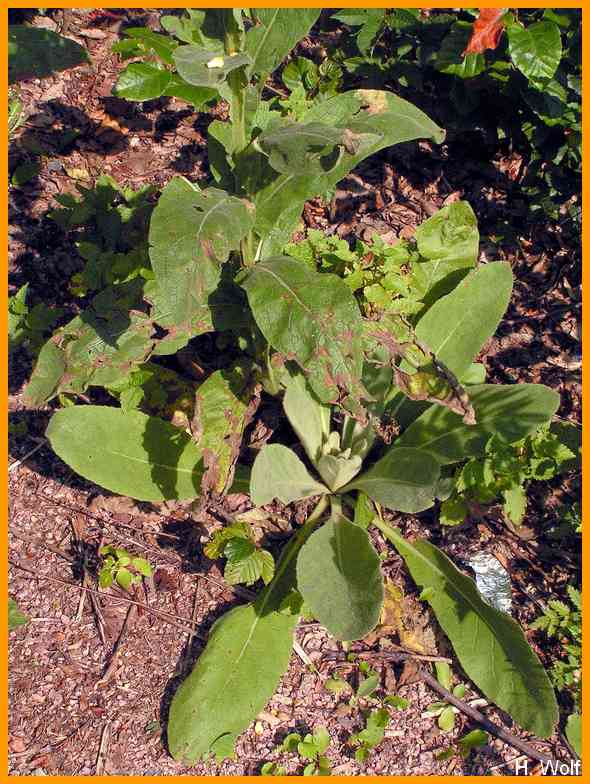 Blätter länglich bis eiförmig.