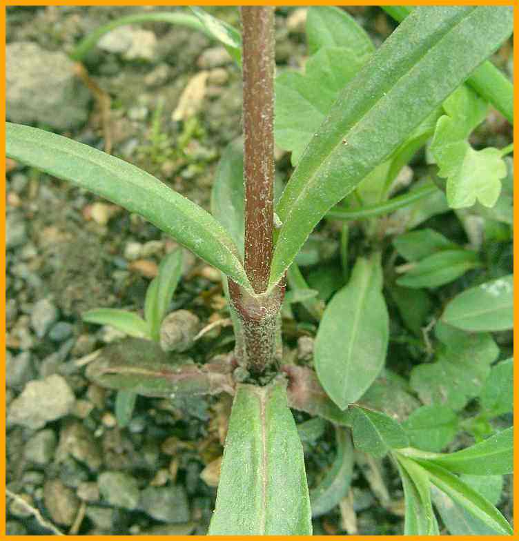 Blätter kreuzgegenständig, lanzettlich.