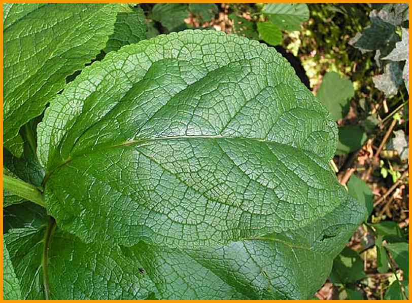Blätter oberseits glänzend, Rand gekerbt.