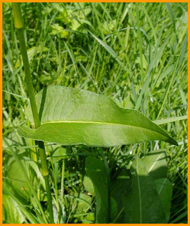 Oberrstes Stängelblatt mit herzförmigem Grund, sitzend.