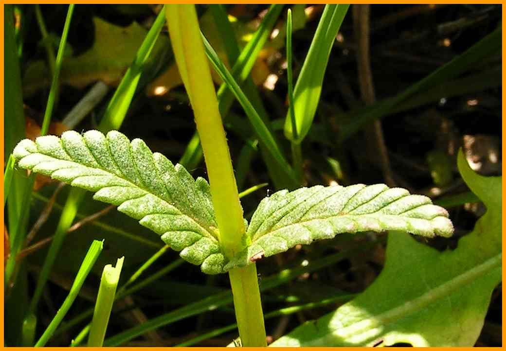 Stängelblätter langlich, stumpf, gesägt.