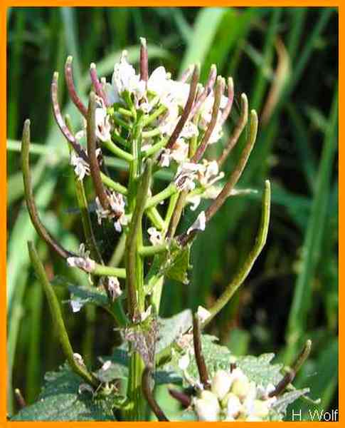 Fruchtstiele etwa so dick wie die Schote.