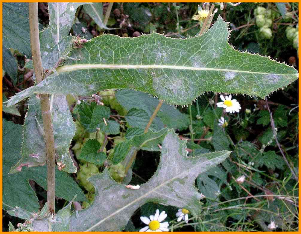 Blätter buchtig gezähnt, nicht herablaufend. Stängelgelblichweiß.