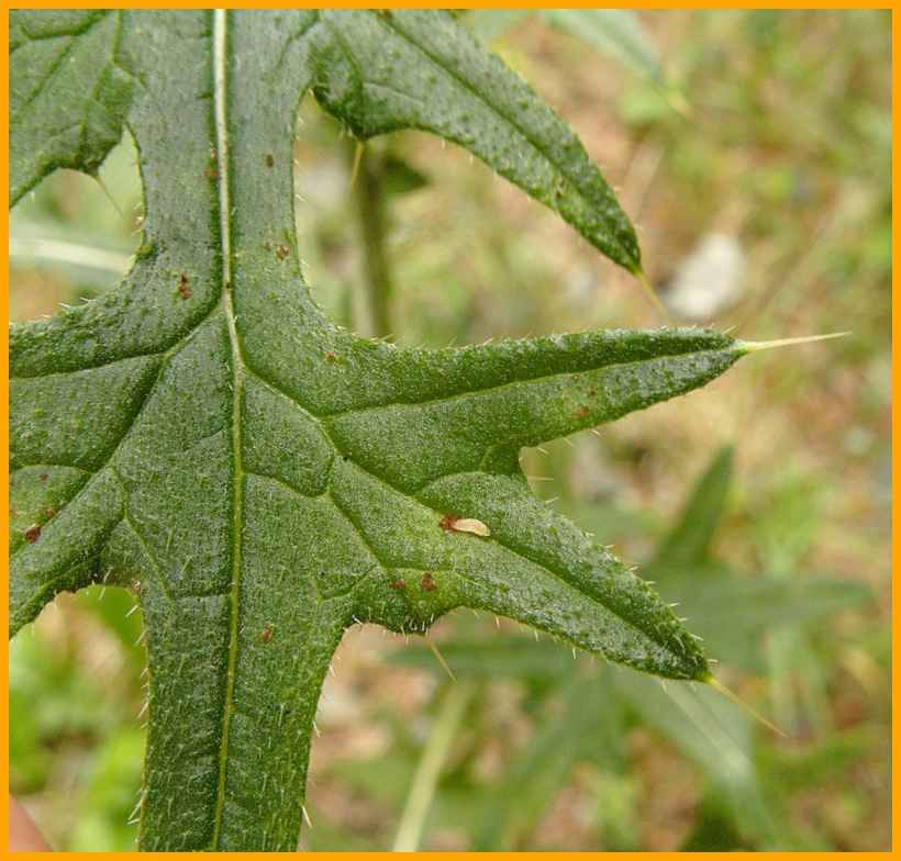 Blattabschnitte in 2 spreizende Zipfel geteilt.