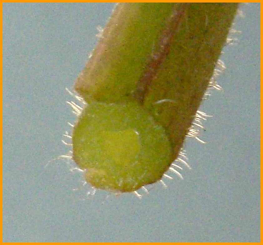 Blattsiel rund, deutlich gerippt, oben gefurcht.