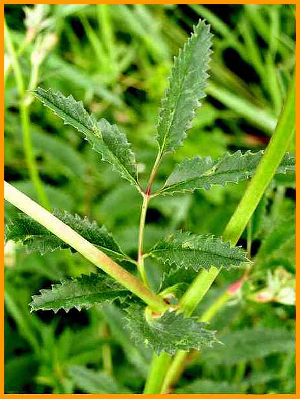 Blätter gefiedert, Fiedern mit jederseits etwa 12 Zähnen.