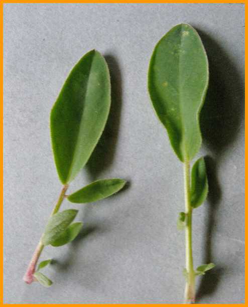 Untere Stängelblätter mit vergrößertem Endblättchen.