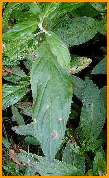 Blätter in den Stiel verschmälert, gezähnt.